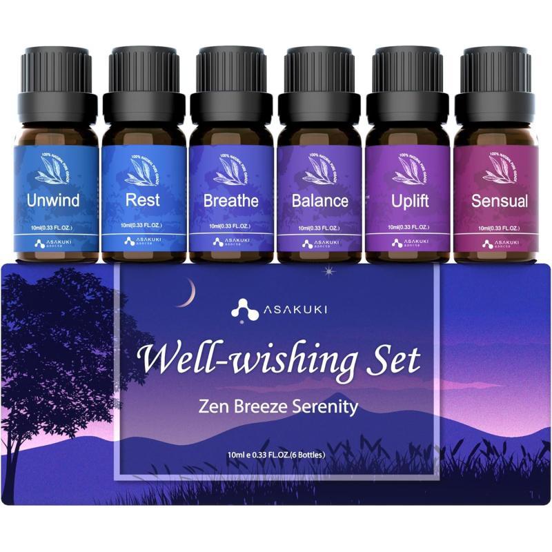 ASAKUKI Essential Oil Blends Essential Oils Set for Diffusers for Home WellBeing Kit Calming Dreams Breathe Relaxing Mood Fresh Air Aromatherapy Oils for Humidifiers Massage 6x10mlWellwishing